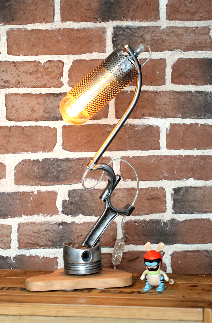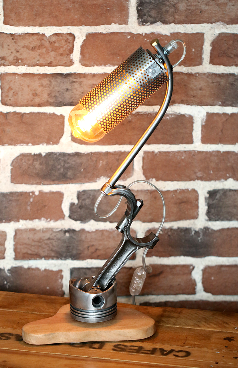J’ai chiné un vieux piston de moteur de R8 Gordini qui était dans une Alpine A110, pour pouvoir faire ce projet qui me trottait dans la tête !